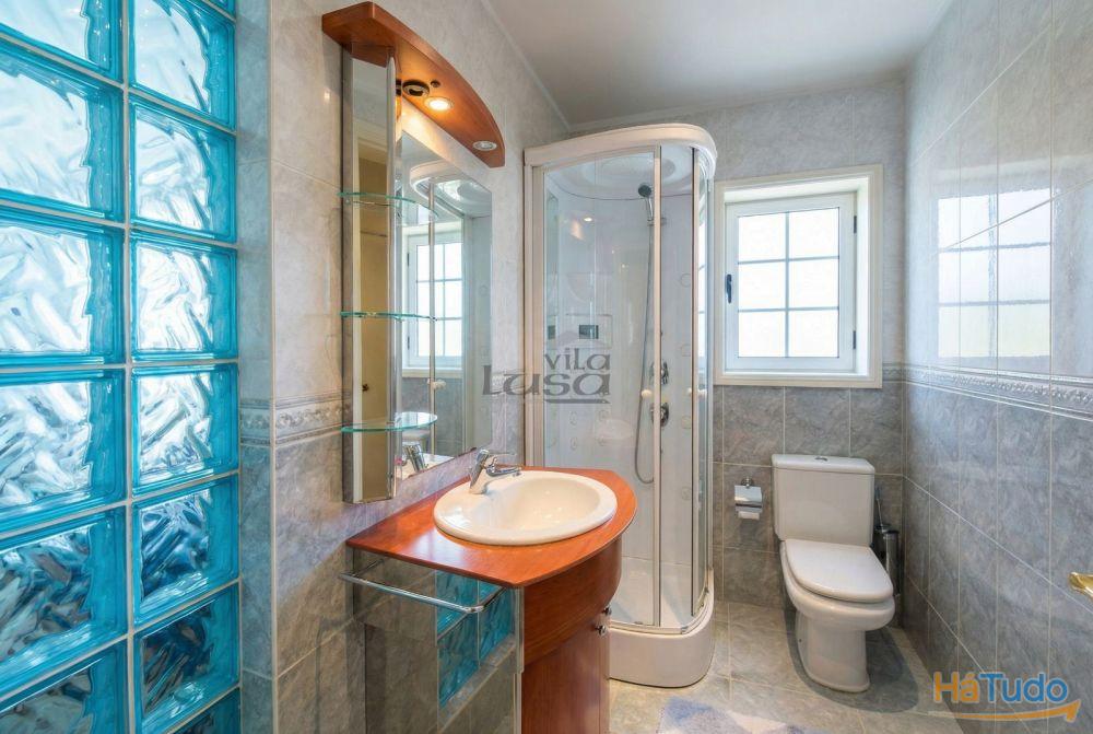 Os acabamentos desta moradia são impressionantes: piso em madeira maciça, carpintaria lacada em excelente estado, caixilharia com vidros duplos, aquecimento central e um painel solar para aquecimento de águas, visando eficiência e conforto.