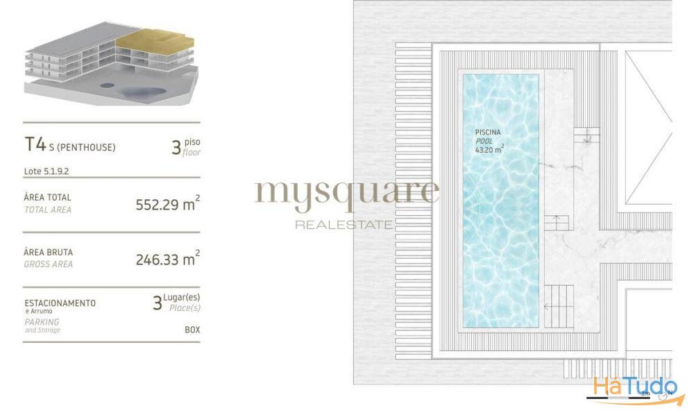 Penthouse T4 no edifício "Blue", com 4 suítes, escritório, terraço, box para 3 veículos e arrumos.
