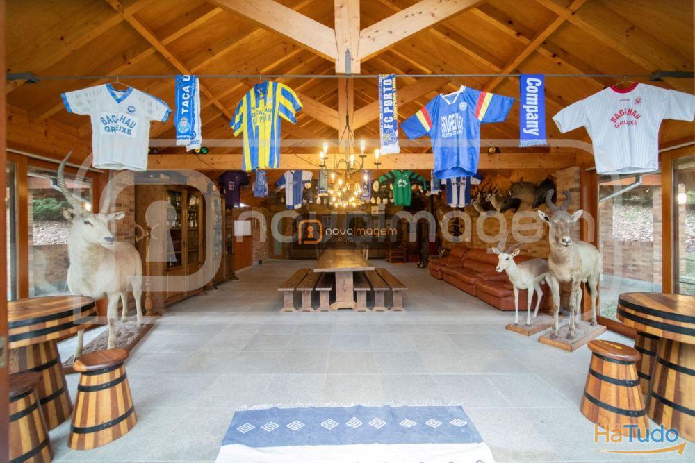 - Cave: salão de jogos com salamandra, sala com bar de acesso direto à garrafeira, 1 wc e sala de arrumos com cofre.