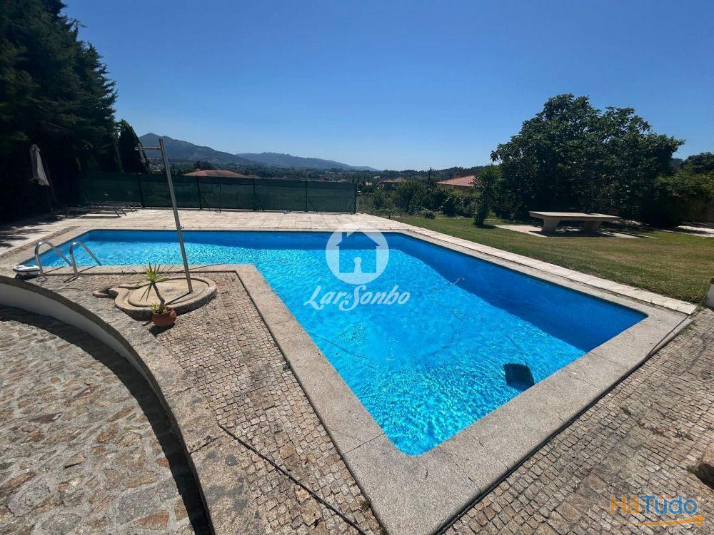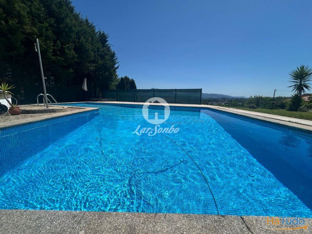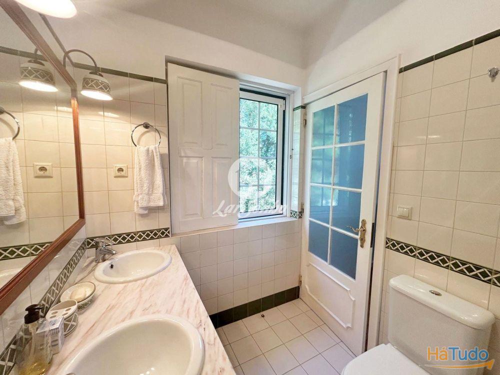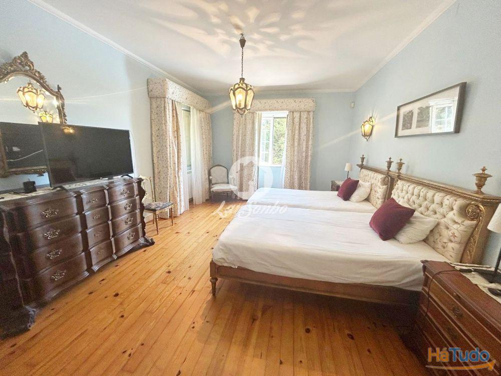 A quinta dispõe ainda de piscina aquecida, jardim com árvores e poço, varanda com vista para a piscina, lavandaria, aquecimento central e 4 frentes solares. O espaço exterior conta com garagem fechada para 4 carros e logradouro.