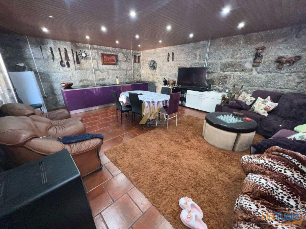 A moradia é distribuída por 2 pisos, contém no rés do chão, cozinha pronta em funcionamento como bar e ainda zona de refeições com salamandra, 1 casa de banho. No piso superior tem 3 quartos, uma sala com lareira e um banho completo.