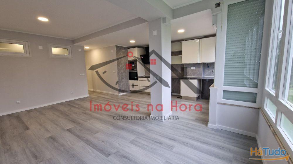 ? Sala e cozinha em open space, num ambiente amplo e luminoso, ideal para momentos de convívio.