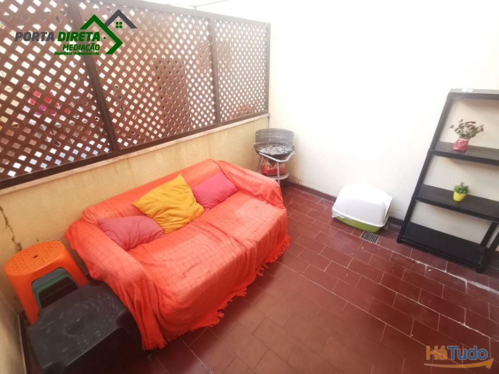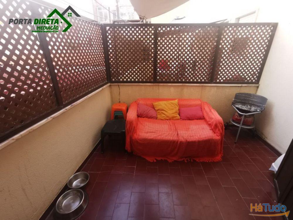 Apartamento com Terraço virado a nascente . Composto por uma sala com lareira , com 2 boas janelas, uma cozinha com armários em duas das paredes e com espaço para colocar uma mesa de refeições. Boas zonas de circulação, casa de banho completa com banheira. O apartamento tem a zona dos quartos bem separada da parte social da casa. Tem 2 quartos, um deles com roupeiro de parede e um excelente terraço , muito seguro uma vez que não tem acesso do exterior . Chão de madeira parquet em toda a casa.