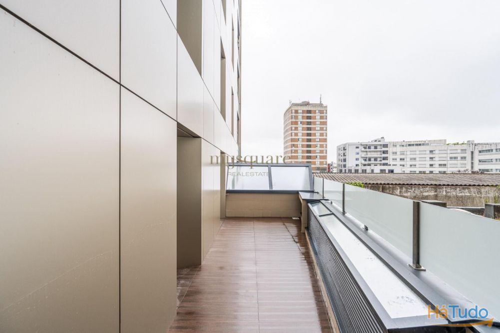 Estamos a falar de um apartamento com uma área bruta privativa de 134m2, com varanda e terraço, além de garagem para dois carros.