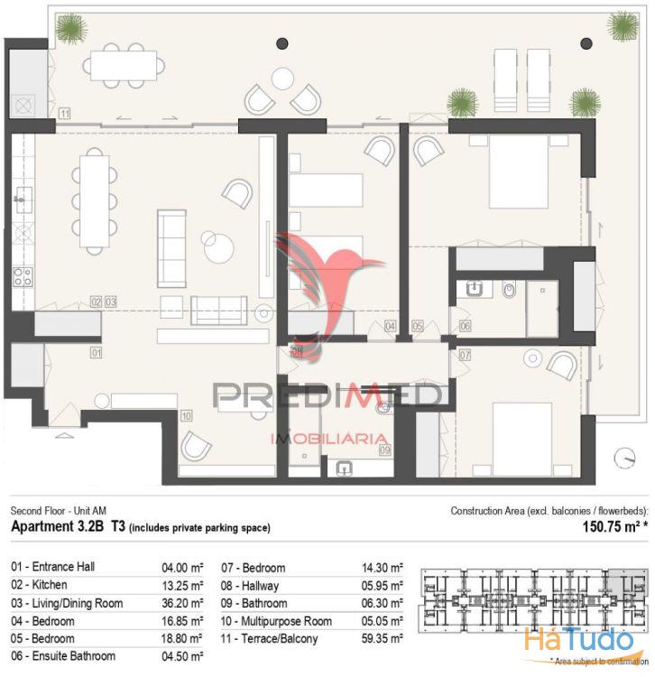 O empreendimento está localizado numa zona de Lagos que se tornou numa zona requintada através da construção de prédios habitacionais de alto nível de qualidade de construção e de acabamentos. A localização é ótima para quem quer estar ao pé de tudo, sem ser incomodado pelo ruído da cidade porque a zona é sossegada. Num raio de 10 minutos a pé, encontram-se um hipermercado Intermarché e um supermercado Spar, e outras lojinhas de bairro, escritórios de advogados, agências de gestão de condomínio, a conservatória do registo civil, também a 3 minutos a pé há cafés de bairro, cabeleireiros.Os acessos são extremamente fáceis.Comprar um apartamento neste empreendimento é um excelente investimento, pois em Lagos há uma grande procura de arrendamentos, para períodos de médio e longo prazo mas também para férias.A construção é de alto nível de qualidade, e o edifício foi idealizado pelo Arquiteto Mário Martins, arquiteto de grande notoriedade várias vezes premiado a nível internacional pela qualidade das suas obras. Características do apartamento01-Hall de entrada - 4,00m202-Cozinha - 13,25m203-Sala de estar/jantar - 36,20m204-Quarto - 16,8505-Quarto em suite- 18,80m206-Instalação sanitária em suite - 4,50m207-Quarto - 14,30m208-Vestíbulo - 05,95m209-Instalação sanitária - 06,30m210-Espaço polivalente - 05,05m211-Terreço/varanda2 lugares de parking privadoContacte-me para mais informações e reservar o seu novo apartamento de luxo em Lagos.Temos também um acordo com um serviço de corretagem para ajudá-lo a financiar a casa dos seus sonhos.