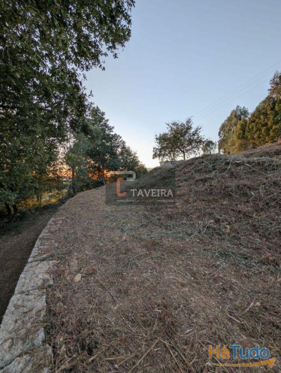 O terreno é inclinado, composto por três leiras planas, encontra-se totalmente vedado e está inserido em zona de construção. Conta com fácil acesso a água e eletricidade.