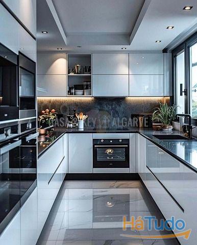 A cozinha está totalmente equipada com eletrodomésticos Bosch de alto desempenho (ou uma marca premium comparável), contra elegantes azulejos de grande formato com efeito mármore branco medindo 60x120 cm - um acabamento que continua nos banheiros, criando uma estética perfeita e refinada por toda parte.