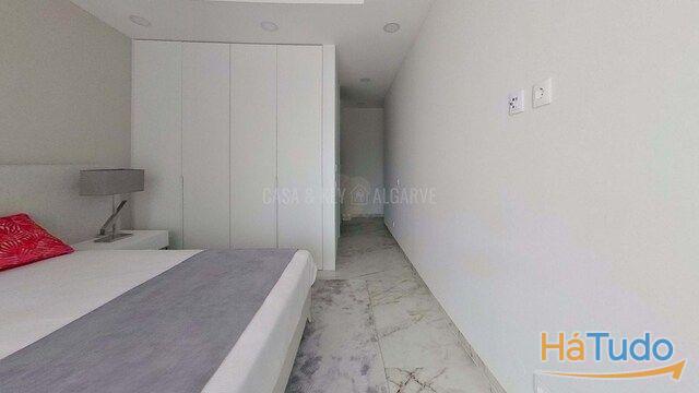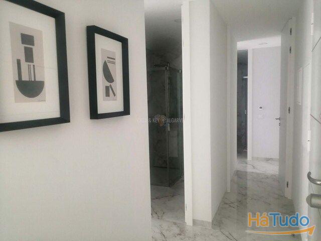 A cozinha elegante vem totalmente equipada com eletrodomésticos de última geração, integrando-se perfeitamente à área de estar para criar um espaço luminoso e convidativo. Três quartos são de dimensões generosas, com roupeiros embutidos e acesso direto a uma varanda privada, onde pode aproveitar o sol algarvio. A casa de banho moderna possui acessórios premium, realçando a sensação de luxo deste apartamento novo no Algarve.